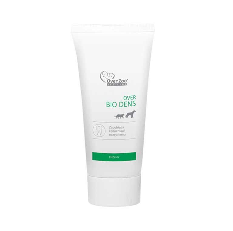 Pentru proprietarii de animale de companie care nu isi pot curata gura cu o periuta de dinti, Over Zoo a dezvoltat o pasta de dinti speciala care trebuie doar pusa pe dinti. Carbonatul de calciu este folosit ca un mineral abraziv usor. Enzimele continute (Amyloglucosidase) de pasta descompun eficient substantele organice ramase pe dinti si previn formarea tartrului. Clorhexidina 0,2% are efect antiseptic.