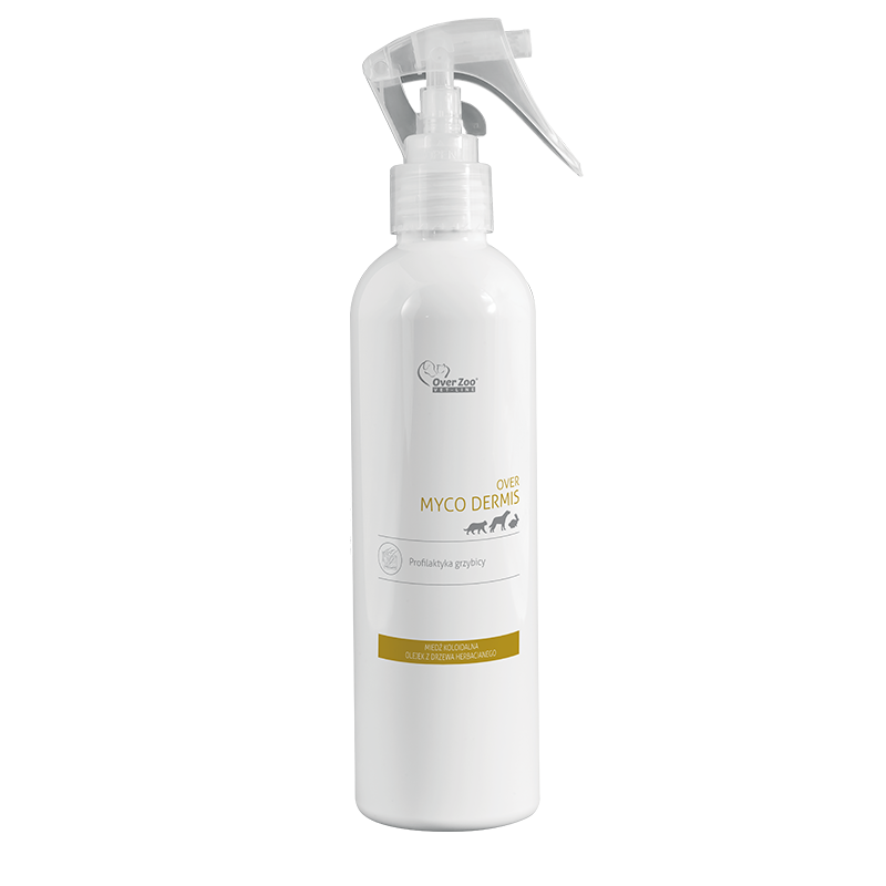 Myco derms 250 ml – un produs care sprijina tratamentul micozei la animalele de companie. Este un lichid sub forma de spray care este potrivit pentru toate animalele de companie. Poate fi folosit si la animalele care nu au incheiat inca stadiul de crestere si maturare. Functioneaza numai local si extern, deci este sigur si non-toxic. In plus, functioneaza usor si este sigur pentru utilizare in preajma oamenilor. Datorita continutului ridicat de cupru, preparatul care sustine tratamentul micozei la animalele de companie este fungicid. In plus, protejeaza animalul impotriva dezvoltarii infectiilor secundare, in principal virale si bacteriene, ceea ce ii permite sa se recupereze mai repede. Datorita adaosului de ulei de arbore de ceai, agentul are un efect antiseptic si calmeaza inflamatia pielii. Formula speciala ajuta la refacerea barierei naturale de protectie a organismului, datorita careia animalul tau de companie se va recupera mai repede si nu va mai simti efectele neplacute ale infectiei fungice. Produsul este disponibil si intr-o sticla de 125 ml.